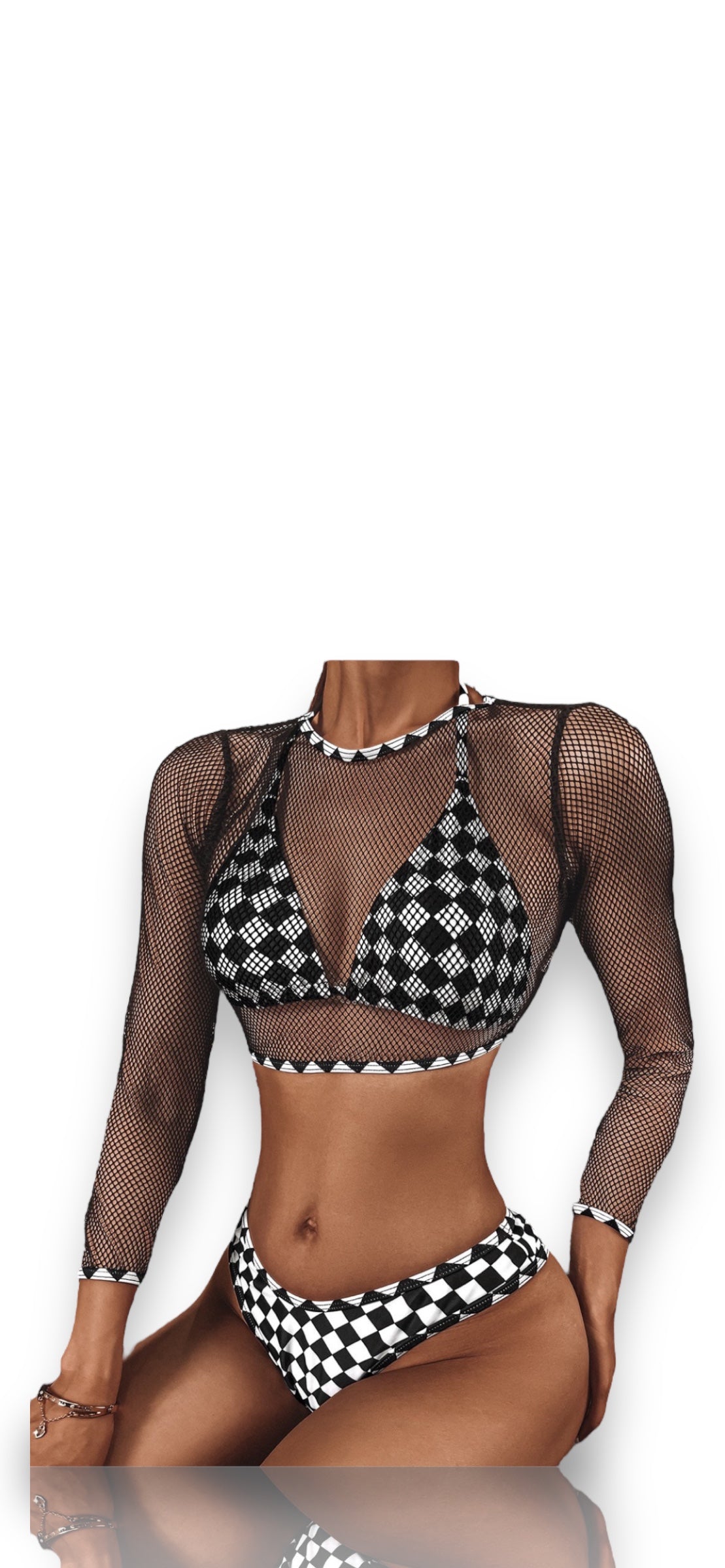 Checkered 3 Piece Swimsuit - Black & White